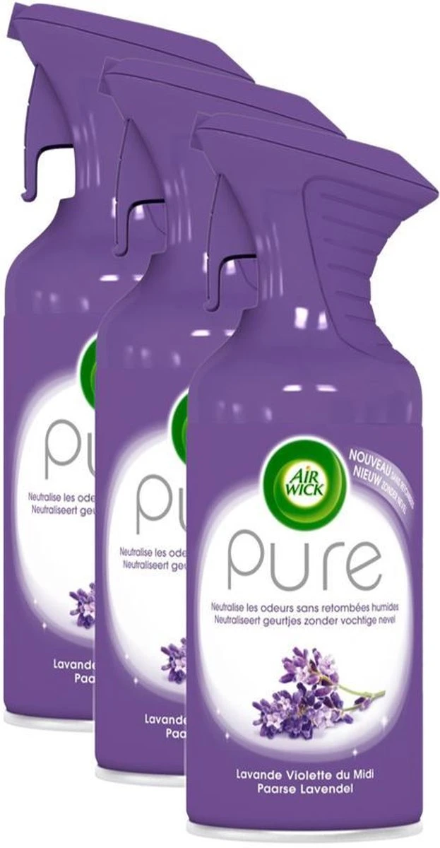 Air Wick Pure Relaxing donne un parfum rafraîchissant de patchouli et de lavande.