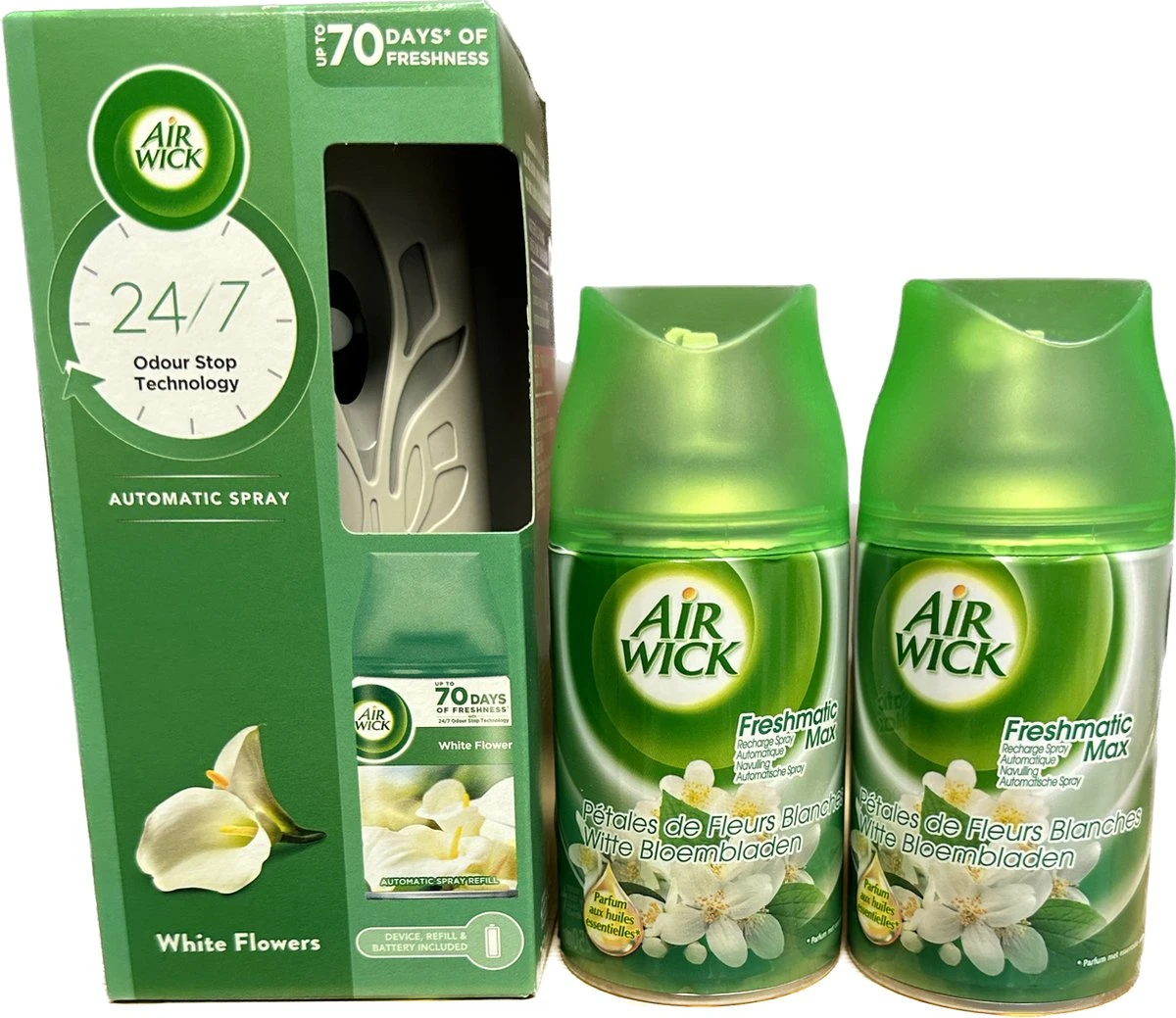 Vaporisateur automatique Air Wick Freshmatic + 2 recharges supplémentaires, au parfum de jasmin et de fleurs blanches !
